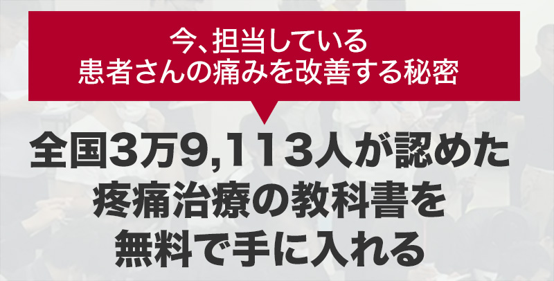 なぜ、4,980円(税抜)で実際に販売している電子書籍「疼痛治療テンプレート」をあなたに無料でプレゼントするのでしょうか?それには理由が2つあります。
