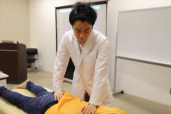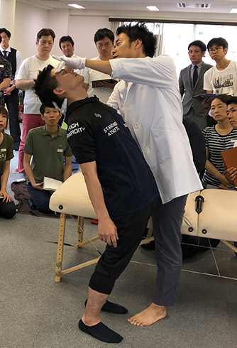あなたが疼痛誘発動作をコンプリートできるまで何度でも実践します!講師や他受講生の身体を使って、疼痛誘発動作の精度を飛躍的に高める為に徹底した練習を行います。